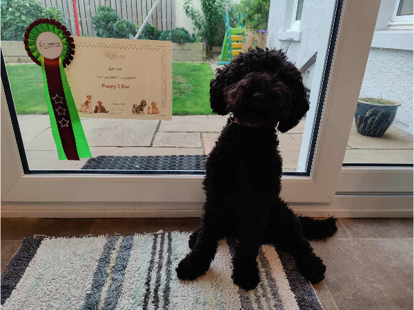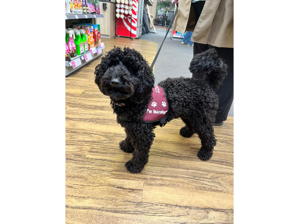 Ziva has started her ‘sound work’. She will (eventually) learn to let someone know when a smoke detector, an alarm, a cooking timer, and/or the front doorbell goes. We’ve started with the cooking timer. She’s getting quite good at locating it. Eventually we’ll add in nudging me when something goes off and ‘leading’ me whatever is making the noise.