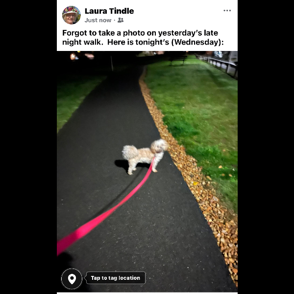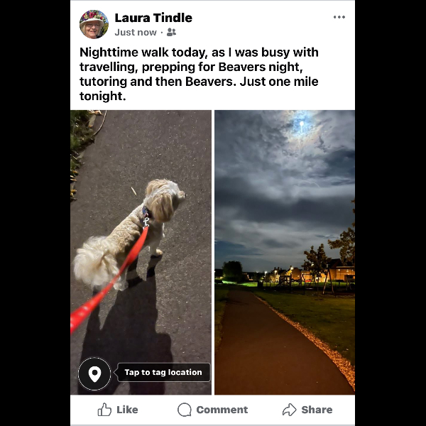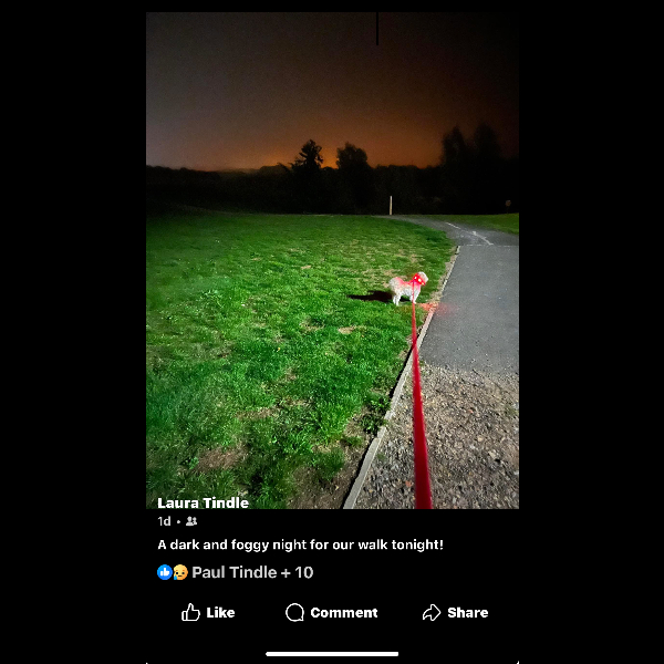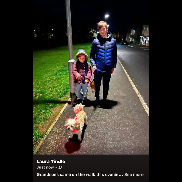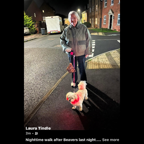 Monday 6th Oct It had to be a late night walk today as I’ve been really busy. Please sponsor me if you can spare a little cash. I’m so impressed by my friend’s hearing dog. He is so clever! And my friend speaks about the difference he has made to her life. She is much less isolated than before.
